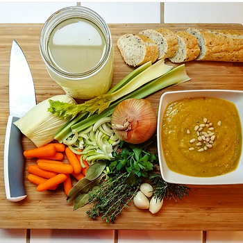 As for the solids, as you can see, it yields a little bit more than this mason jar holds. I make a soup right away from them, one of my favorites being a white bean and vegetable puree. It couldn't be easier: throw those solids into a Ninja or Vitamix, add a can of white or cannellini beans, add back to a pot set over low heat and thin out to your preference with your fresh stock. Here, I season with some rosemary, salt, pepper and voila-a very nourishing reward for all of your hard work.