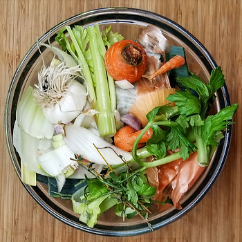 This batch typically yields anywhere between 8-9 cups, depending on how much has been simmered down. It can be used right away, refrigerated, or frozen for later. Don't neglect those scraps! These are headed straight for the compost:
